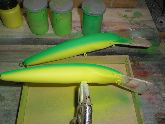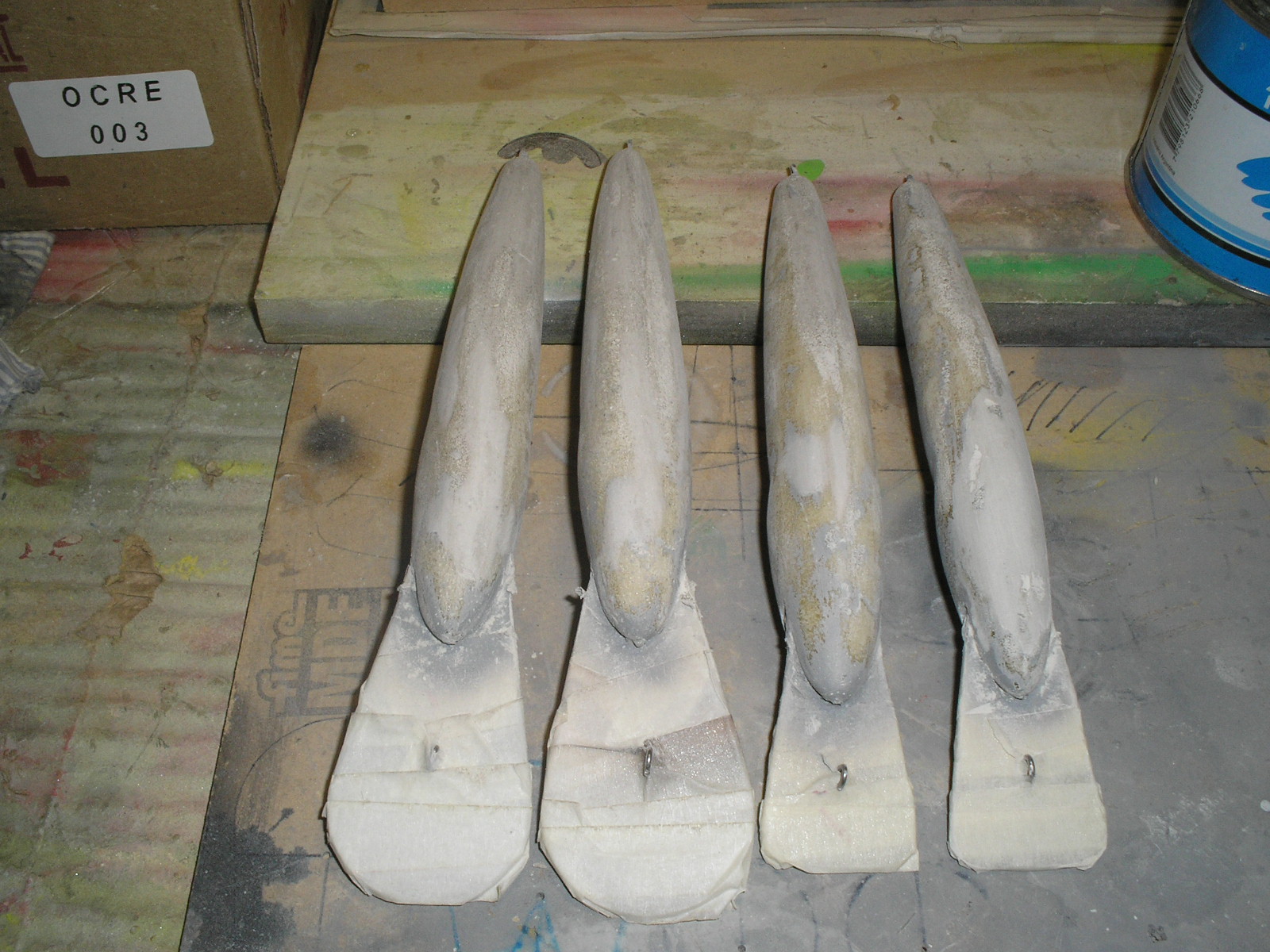 Los sabalitos , nótese que en el lomo del de arriba se formó una “molesta” burbuja (producto de que no lo masillé/lijé correctamente).